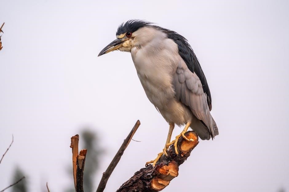 Mexico’s wetlands and coastal areas are home to a variety of waterfowl and wading birds, including herons, egrets, ducks, and ibises. These birds thrive in diverse habitats, from mangroves to marshes. Field guides like Howell and Webb or Peterson are invaluable for identifying species like the Great Blue Heron and Wood Stork. Wading birds are often seen in shallow waters, feeding on fish and invertebrates. Their graceful movements and vibrant plumage make them a favorite among birders. Mexico’s strategic location along migration routes ensures a constant flow of these birds, offering endless opportunities for observation and study.